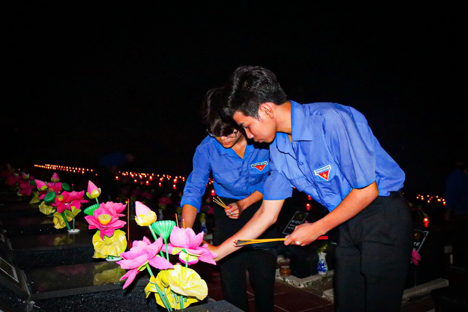 Tại buổi lễ, các đại biểu và đoàn viên thanh niên thực hiện nghi thức mặc niệm, dâng hương, dâng hoa tưởng nhớ các Anh hùng Liệt sĩ, thắp nến tri ân tại hơn 5200 phần mộ.
