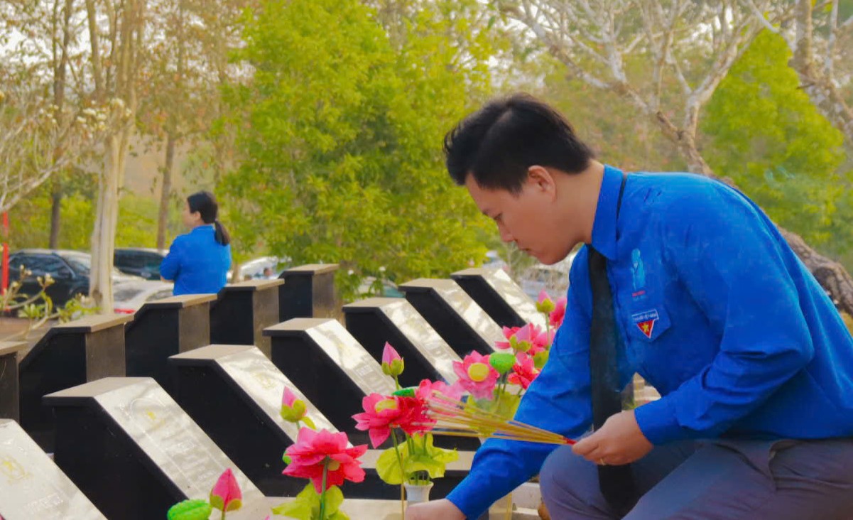 Đồng chí Trần Hoàng Trực, Uỷ viên Ban Chấp hành Trung ương Đoàn, Tỉnh ủy viên, Bí thư Tỉnh đoàn dâng hương tưởng nhớ, tỏ lòng thành kính và biết ơn các anh hùng liệt sĩ