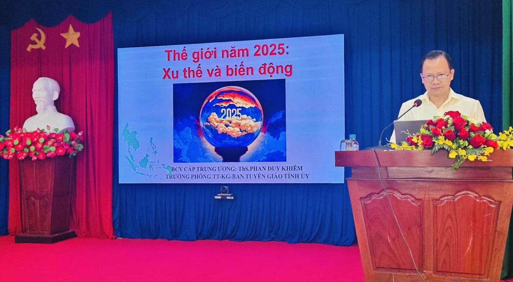 Tại hội nghị, đồng chí Phan Duy Khiêm, Trưởng phòng Thông tin - Khoa giáo, Ban Tuyên giáo và Dân vận Tỉnh ủy, đồng thời là Báo cáo viên cấp Trung ương đã có phần trình bày sâu sắc về chuyên đề “Thế giới năm 2025: Xu thế và biến động”.