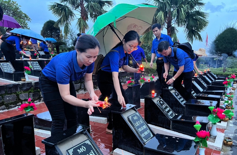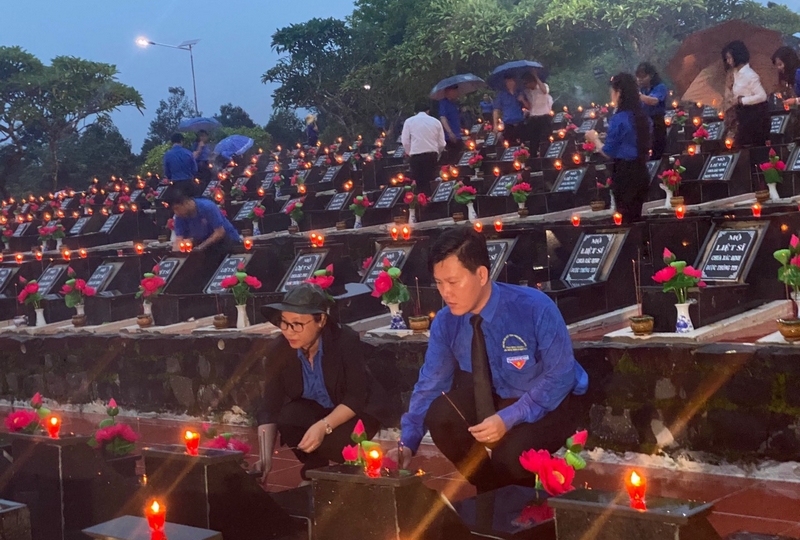 Ngay sau Lễ viếng, tại nơi yên nghỉ của gần 5.000 phần mộ các anh hùng liệt sĩ, lãnh đạo các sở, ban, ngành, đoàn thể tỉnh và 500 bạn đoàn viên thanh niên đã thắp nến tri ân, thắp hương lên từng phần mộ các anh hùng liệt sĩ.