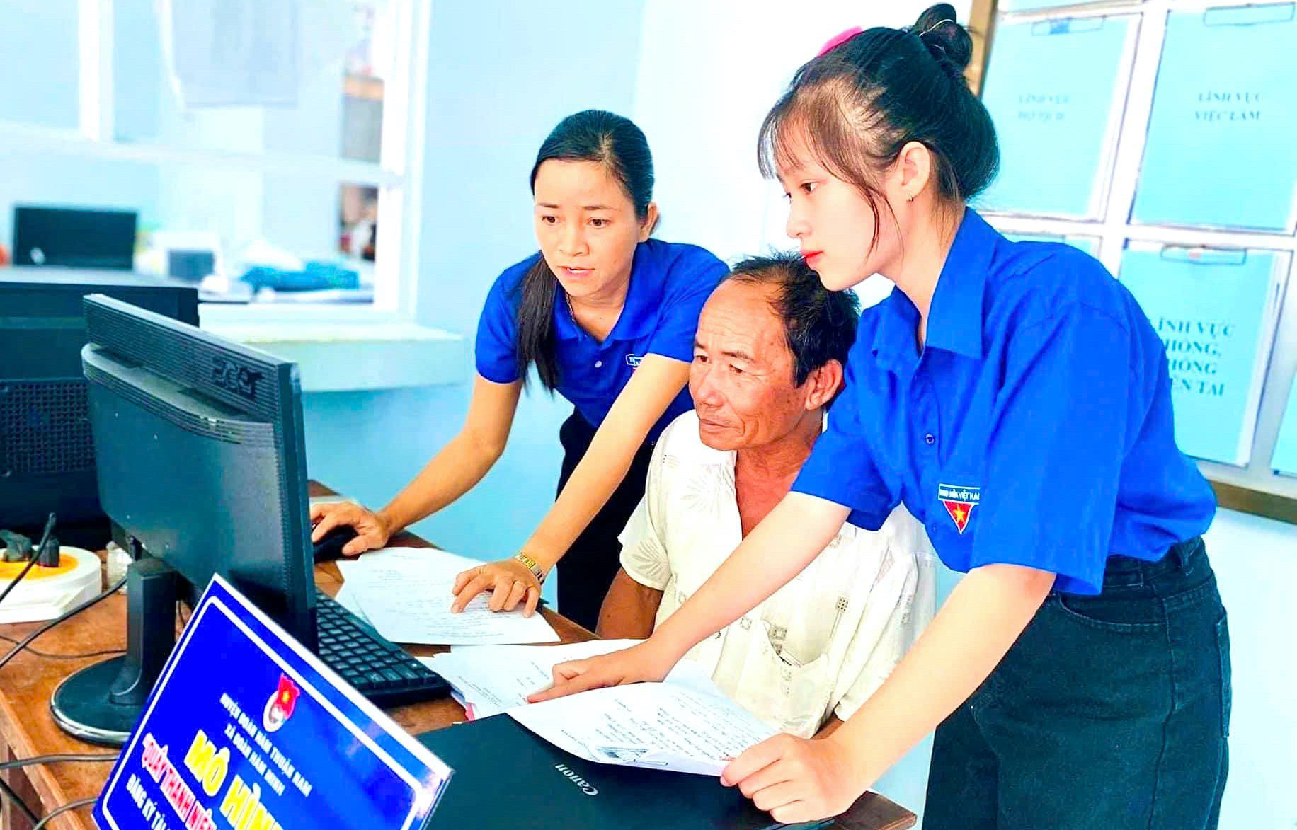 Đoàn viên thanh niên hỗ trợ người dân thực hiện các thủ tục hành chính công