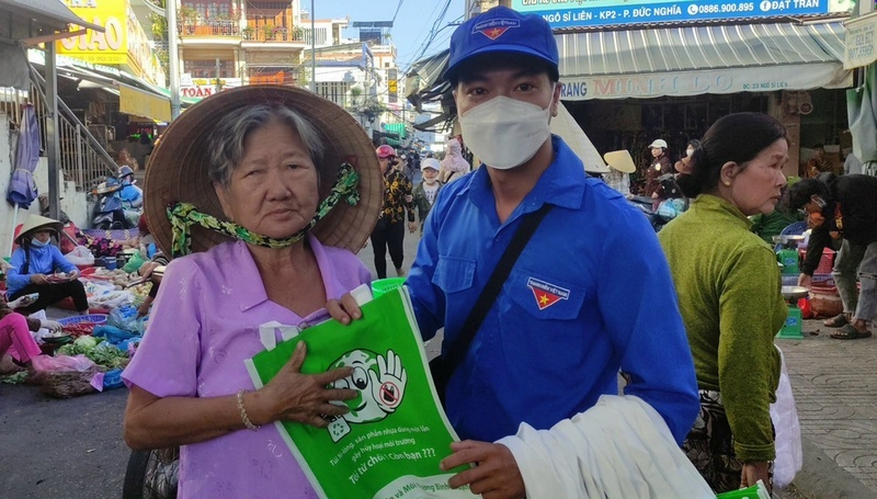Phát 1.200 túi vải không dệt vì môi trường cho người dân đi chợ