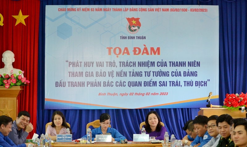 Phát biểu trao đổi tại chương trình toạ đàm, đồng chí Trần Thị Hoà Xuân - Phó Bí thư Tỉnh đoàn cho biết “Đấu tranh bảo vệ nền tảng tư tưởng của Đảng, đấu tranh, phản bác các quan điểm sai trái thù địch” là một nội dung trọng tâm, có tính lý luận, chính trị cao cho Đoàn viên, nhằm trang bị cho thanh niên các kỹ năng, kiến thức, những thông tin có định hướng về những vấn đề mang tính chất lý luận và thực tiễn nhằm nhận diện được các hình thức diễn biến hoà bình trong tình hình mới, chống phá Đảng – nhà nước – chính quyền dưới nhiều hình thức như: công tác tuyên truyền được đổi mới, sáng tạo, linh hoạt gắn với đặc điểm thanh niên ở mỗi khối, đối tượng, nhằm thu hút sự quan tâm, chú ý của thanh niên; giúp cho thanh niên hiểu đúng, hiểu đủ nội dung của Nghị quyết và ý thức được trách nhiệm của mình trong việc bảo vệ nền tảng tư tưởng của Đảng, đấu tranh phản bác các quan điểm sai trái, thù địch trong tình hình mới; Thường xuyên tuyên truyền các gương tiêu biểu, điển hình trong công tác Đoàn và phong trào thanh thiếu nhi giúp lan tỏa năng lượng tích cực, lối sống đẹp trong đoàn viên thanh niên ...