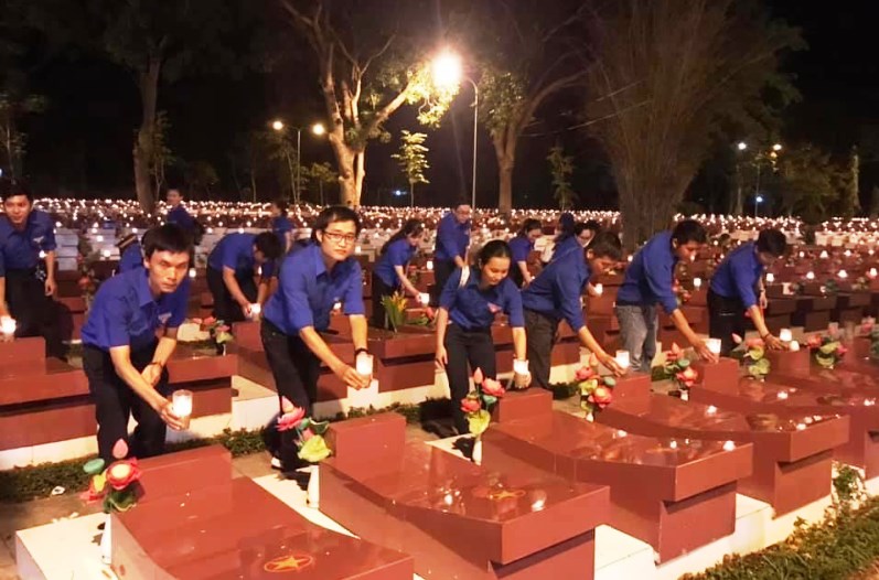 Trong không khí trang nghiêm, xúc động, các đồng chí lãnh đạo tỉnh cùng đông đảo đoàn viên, thanh thiếu nhi, nhân dân địa phương đã dâng hoa, thắp hương và thắp lên những ngọn nến tri ân trên hơn 9000 phần mộ tại Nghĩa trang liệt sỹ.