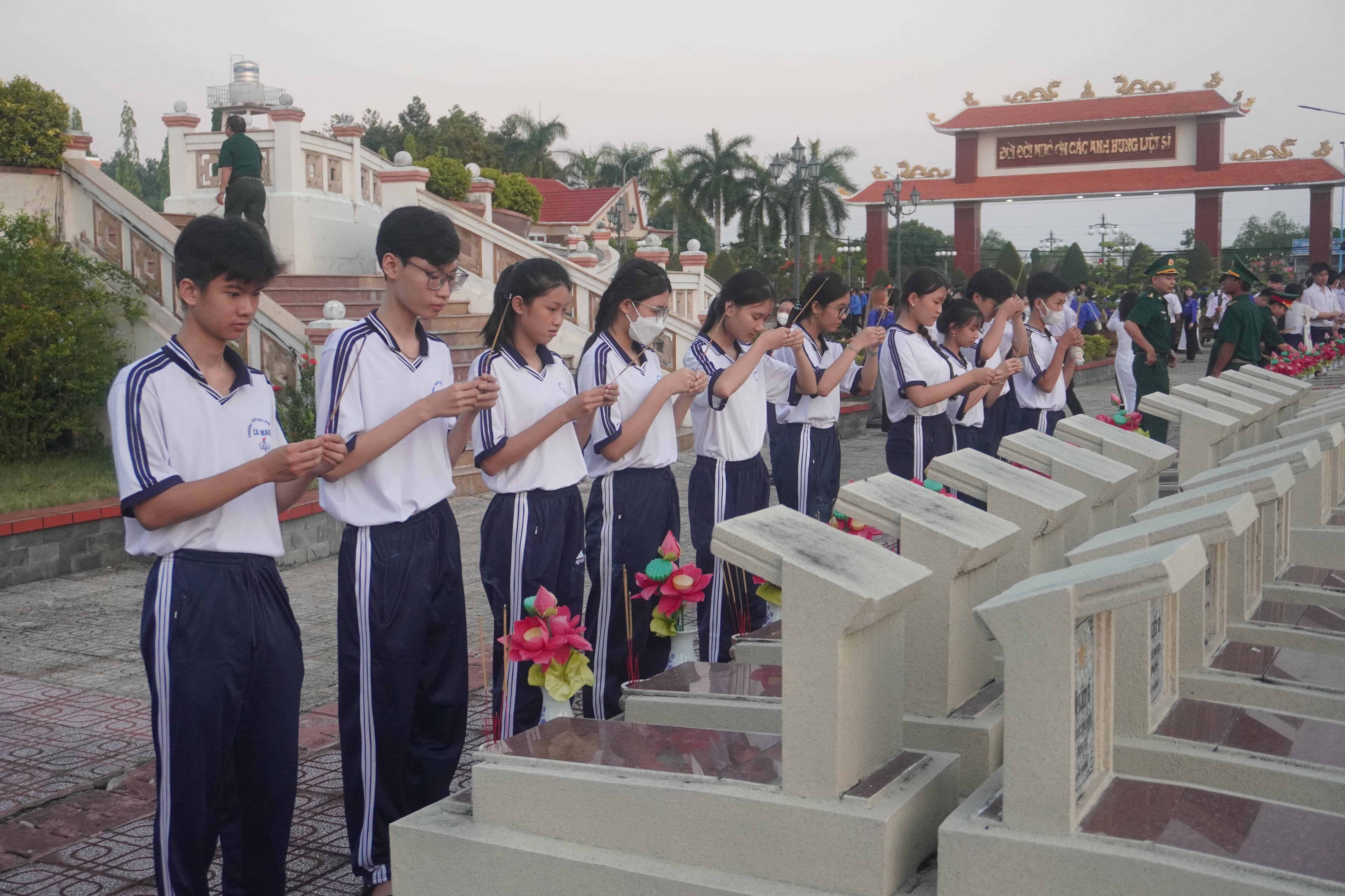 Chương trình Lễ diễn ra trong không khí trang nghiêm với phút mặc niệm thành kính tưởng nhớ, bày tỏ lòng biết ơn vô hạn của các đại biểu cùng thế hệ trẻ đối với các anh hùng liệt sĩ đã anh dũng hy sinh vì sự nghiệp xây dựng và bảo vệ Tổ quốc, giải phóng quê hương, thống nhất đất nước.