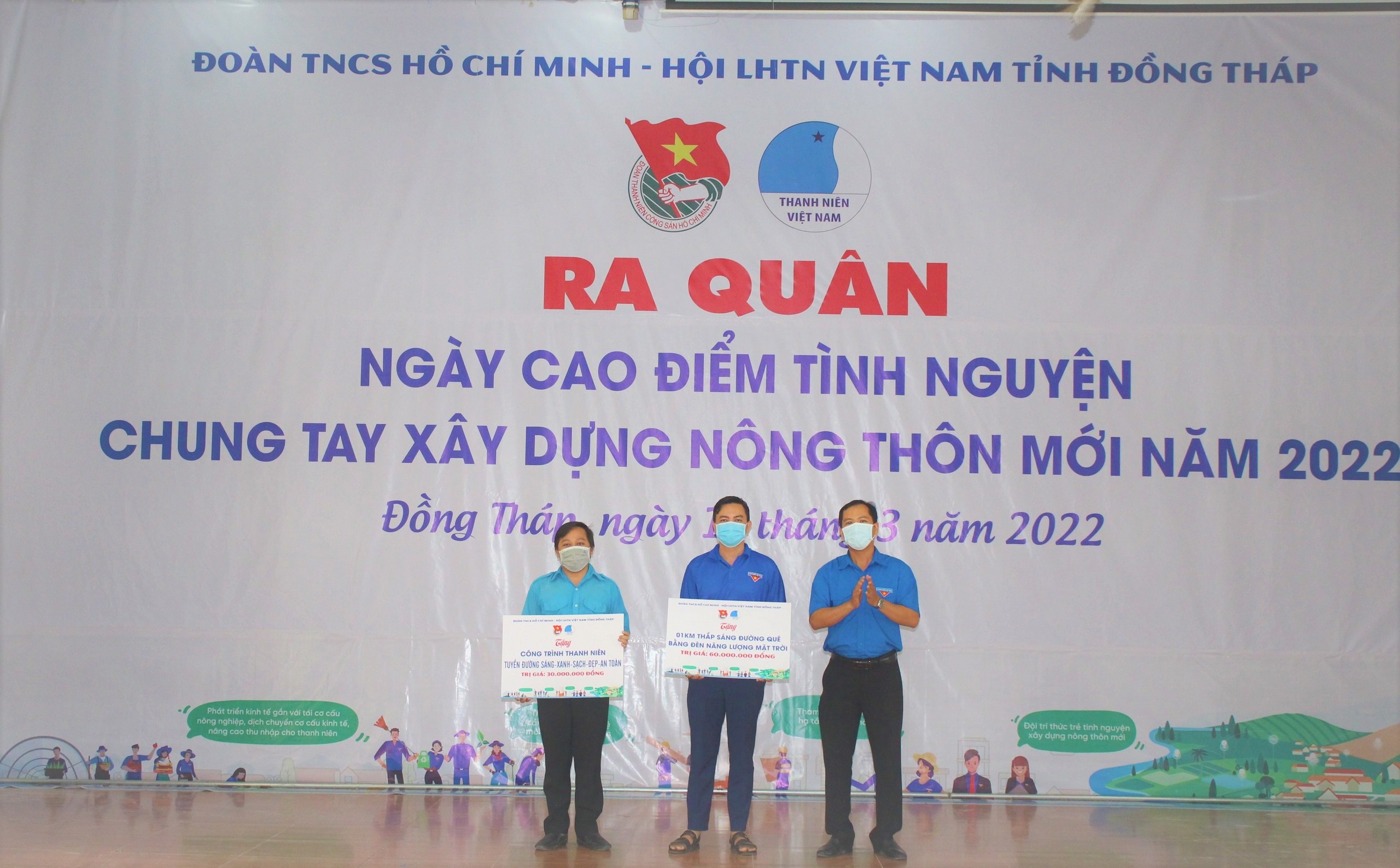 Tại chương trình, nhằm Hỗ trợ huyện Lấp Vò thực hiện các tiêu chí về xây dựng Nông thôn mới Ban Thường vụ Tỉnh đoàn Đồng Tháp đã trao tặng cho Tuổi trẻ huyện Lấp Vò 02 công trình thanh niên gồm: 01km thắp sáng đường quê bằng đèn năng lượng mặt trời trị giá 60 triệu đồng và triển khai thực hiện tuyến đường “Sáng – Xanh – Sạch – Đẹp – An toàn” với kinh phí triển khai thực hiện là 30 triệu đồng. Ngoài ra, Huyện đoàn Lấp Vò đã tặng các công trình, phần việc cho đơn vị đăng cai tổ chức gồm: Thực hiện 01 công trình thanh niên - tranh bích họa trên tường tuyên truyền xây dựng Nông thôn mới tại trường THCS Bình Thành; Tặng 1.000 quyển tập cho đội viên, thiếu nhi; Tặng 50 bảng tuyên truyền xây dựng nông thôn mới; Tặng 01 căn nhà Khăn quàng đỏ cho Đội viên có hoàn cảnh khó khăn với tổng giá trị gần 100 triệu đồng.