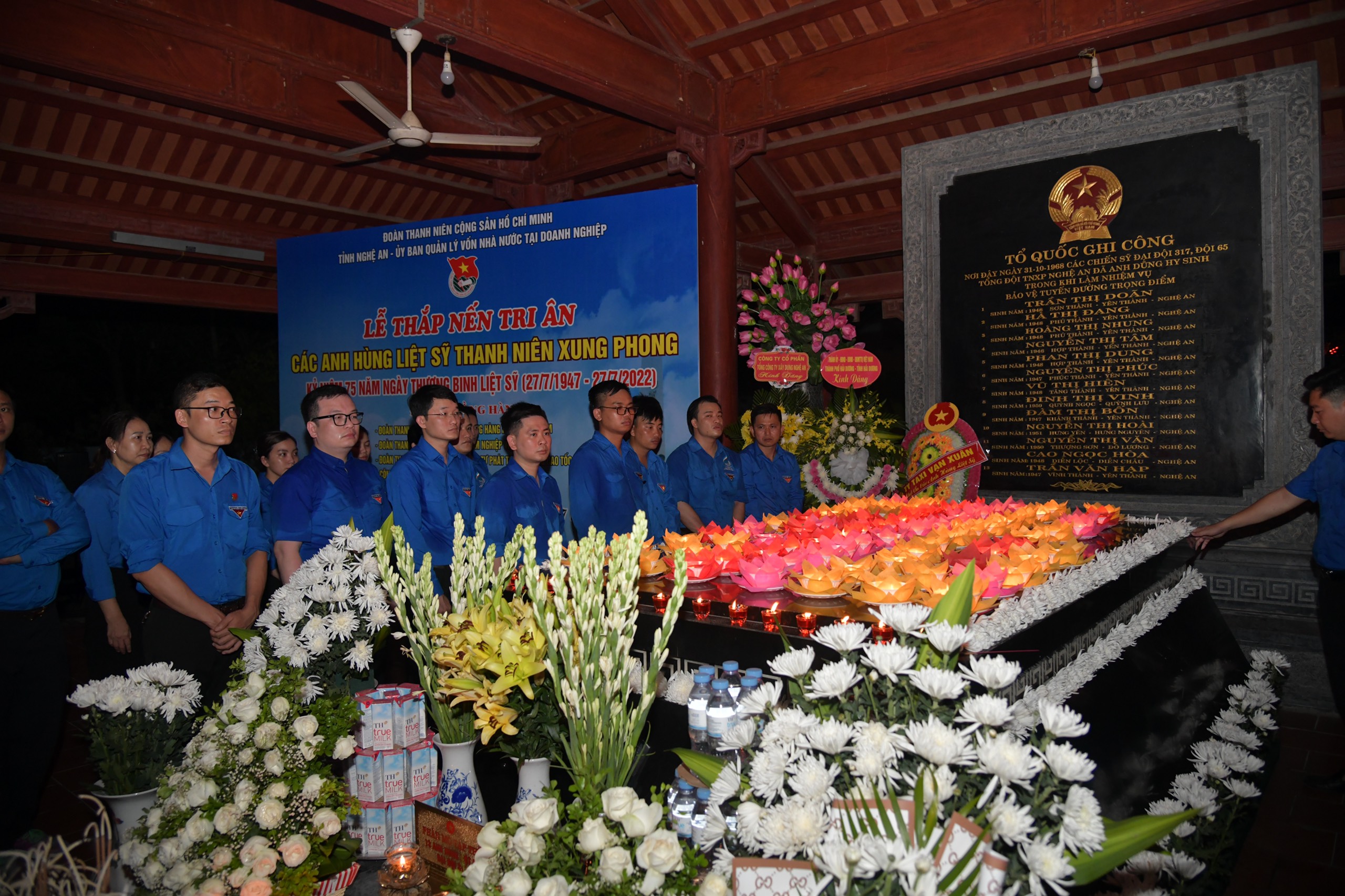 Tại Nghệ An, Ban Thường vụ Tỉnh đoàn phối hợp với BCH Đoàn Thanh niên Ủy ban Quản lý Vốn Nhà nước tại doanh nghiệp trang trọng tổ chức Lễ thắp nến tri ân các anh hùng, liệt sỹ thanh niên xung phong tại Khu di tích lịch sử quốc gia Truông Bồn, xã Mỹ Sơn, huyện Đô Lương.