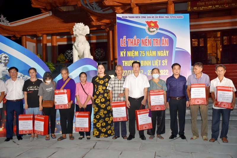 Cũng trong chương trình Lễ thắp nến tri ân đầy ý nghĩa này, Tỉnh đoàn, Sở Lao động Thương binh và Xã hội tỉnh, Thành đoàn và các Đoàn trực thuộc Tỉnh đoàn tặng 33 phần quà, mỗi phần trị giá 500.000 đồng cho gia đình chính sách, gia đình có công tiêu biểu, Cựu thanh niên xung phong trên địa bàn thành phố Trà Vinh.