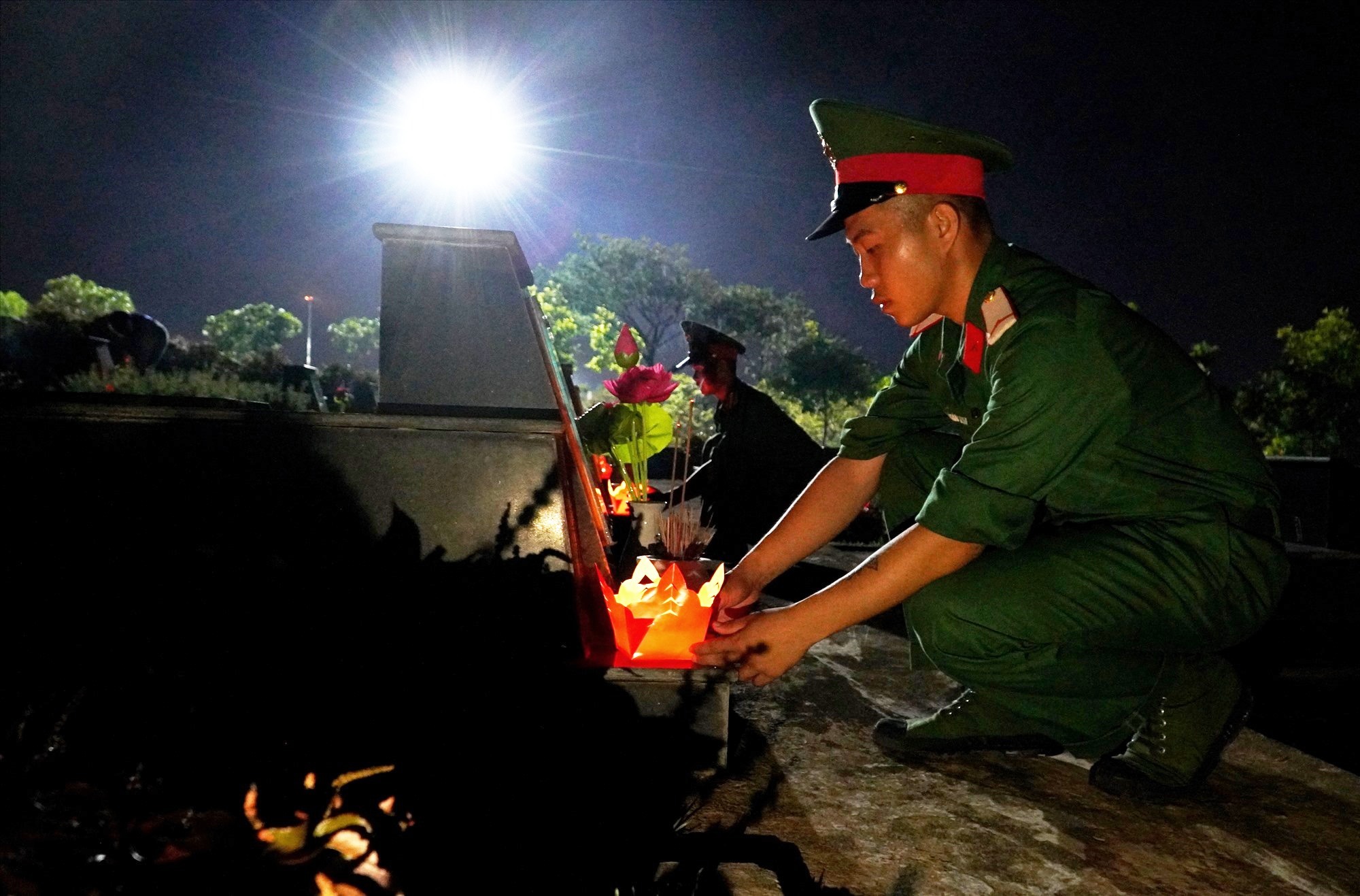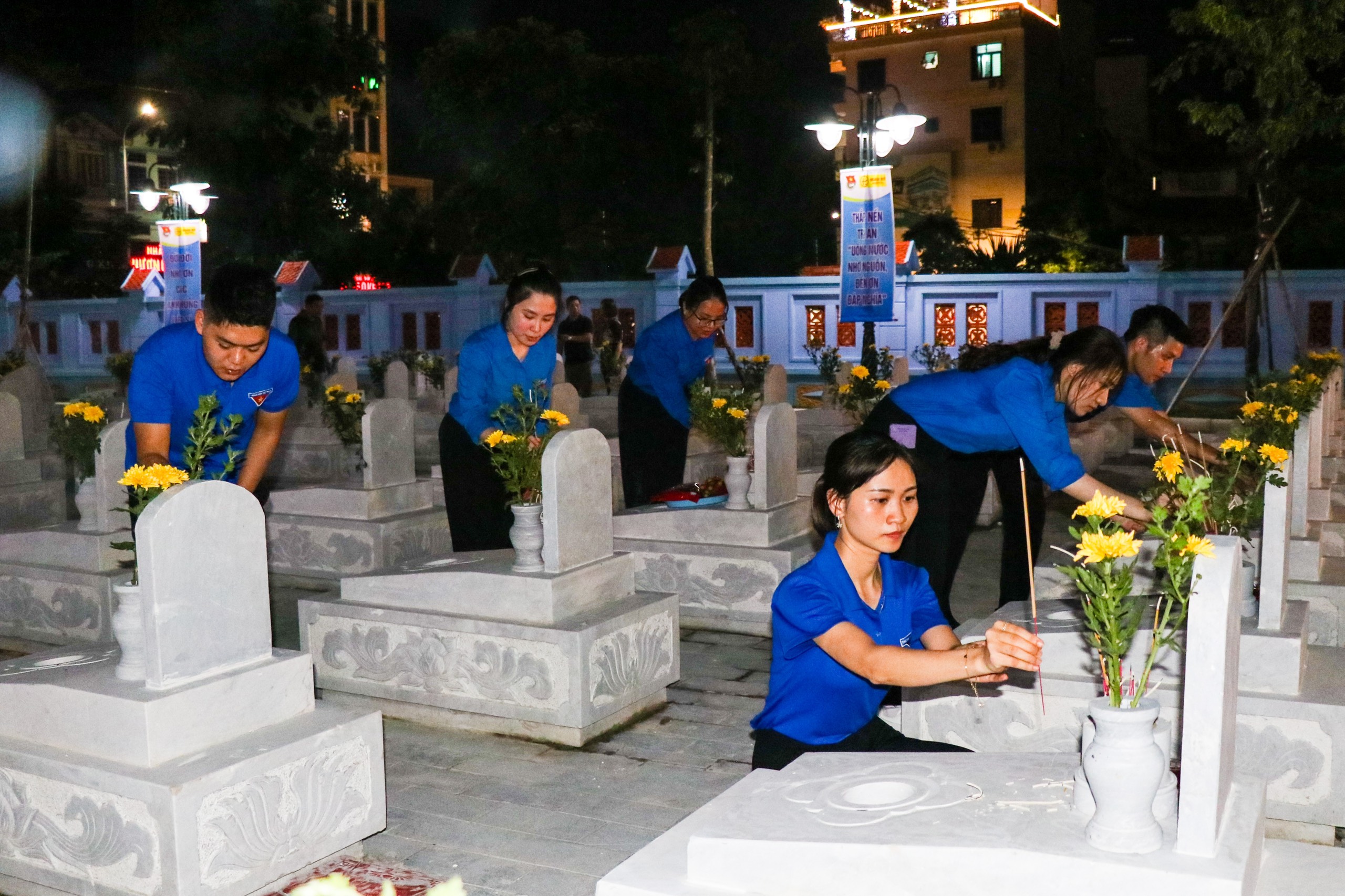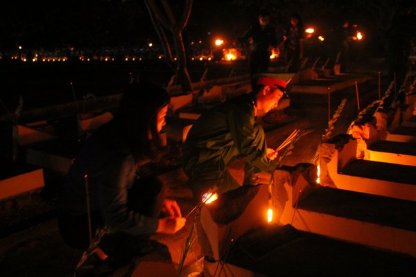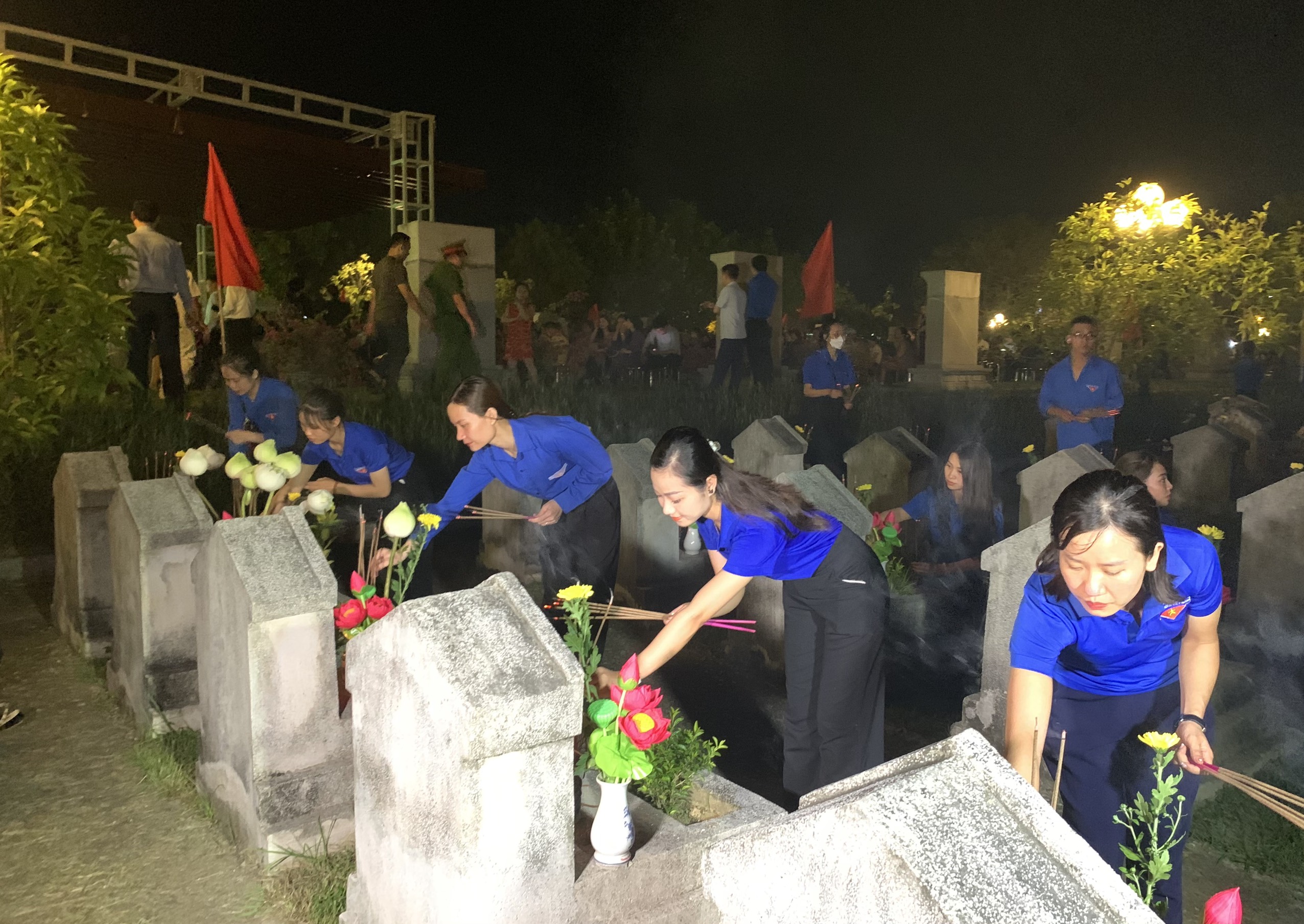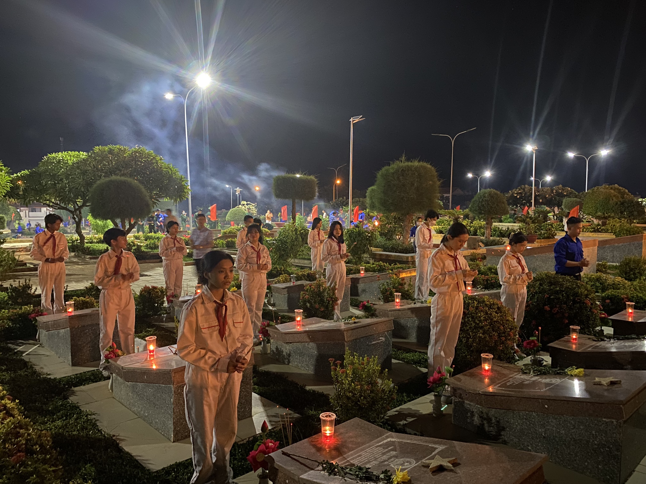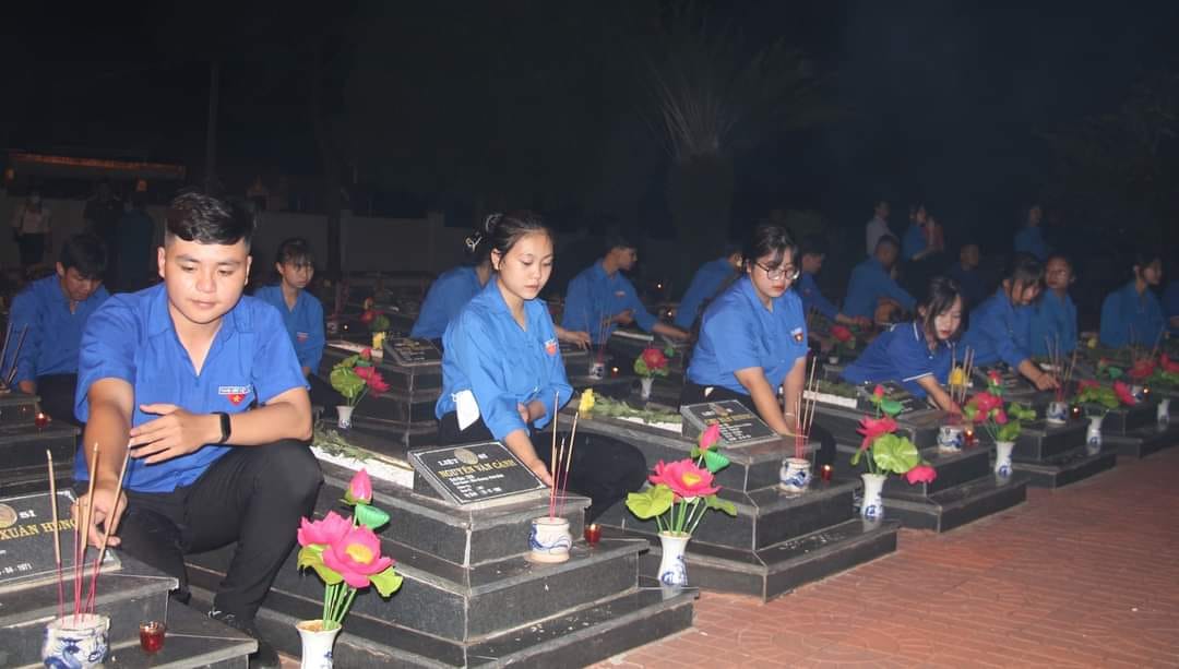 Đoàn viên thanh niên thắp nến tri ân tại các phần mộ liệt sỹ