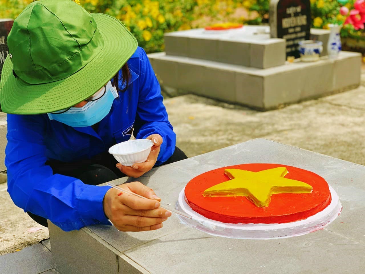 ĐVTN sơn lại các phần mộ liệt sĩ tại thành phố Cam Ranh