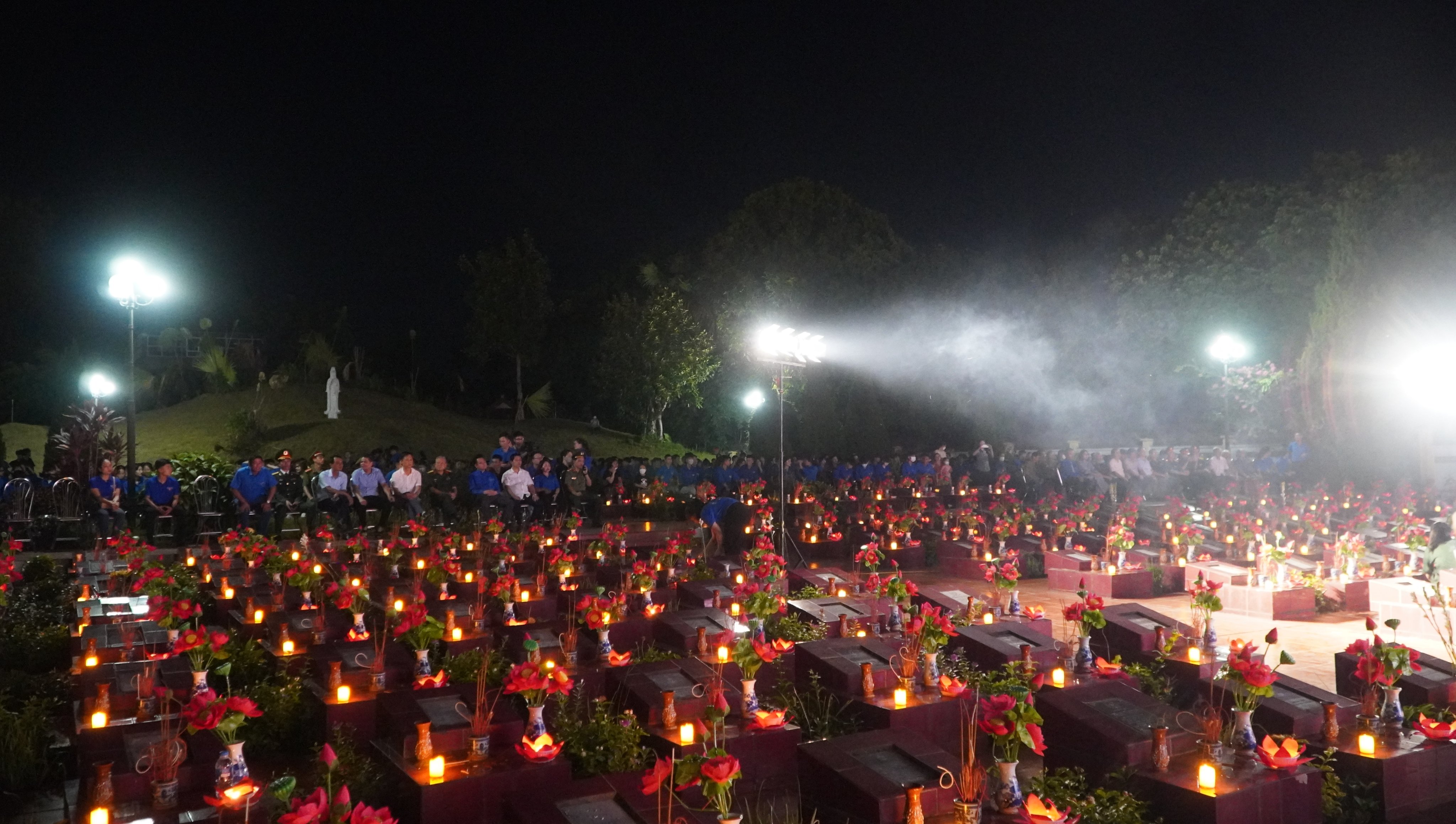 Hơn 1.000 đại biểu, chiến sĩ lực lượng vũ trang và đoàn viên, thanh niên đã tham gia Lễ thắp nến tri ân tại nghĩa trang liệt sĩ Dốc Bà Đắc (xã Thới Sơn, Tịnh Biên) do Ban Thường vụ Tỉnh Đoàn An Giang phối hợp Sở Lao động - Thương binh và Xã hội, Hội Cựu chiến binh tỉnh tổ chức.