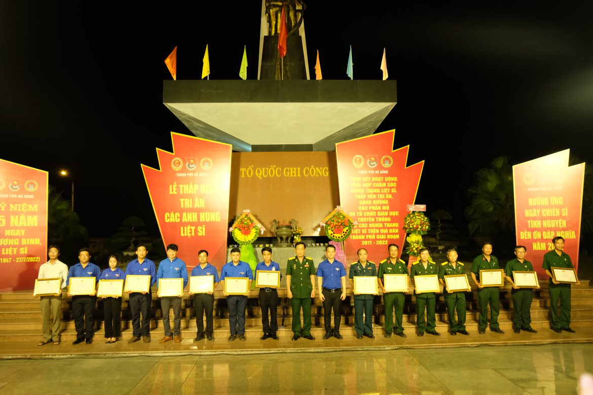 Tối ngày 24/7, Thành Đoàn – Hội Cựu chiến binh thành phố - Sở Lao động Thương binh và Xã hội thành phố phối hợp tổ chức Lễ thắp nến tri ân các anh hùng liệt sĩ và Tổng kết rút kinh nghiệm hoạt động phối họp về tổ chức chăm sóc Nghĩa trang liệt sĩ, Thắp nến tri ân, Dâng hương các phần mộ và tổ chức giáo dục truyền thống tại Nghĩa trang liệt sĩ trên địa bàn thành phố Đà Nẵng giai đoạn (2011-2022) tại Nghĩa trang Liệt sĩ thành phố và nghĩa trũng Hòa Khương.
