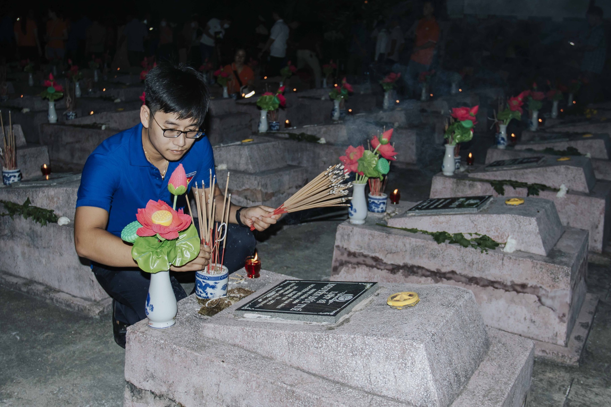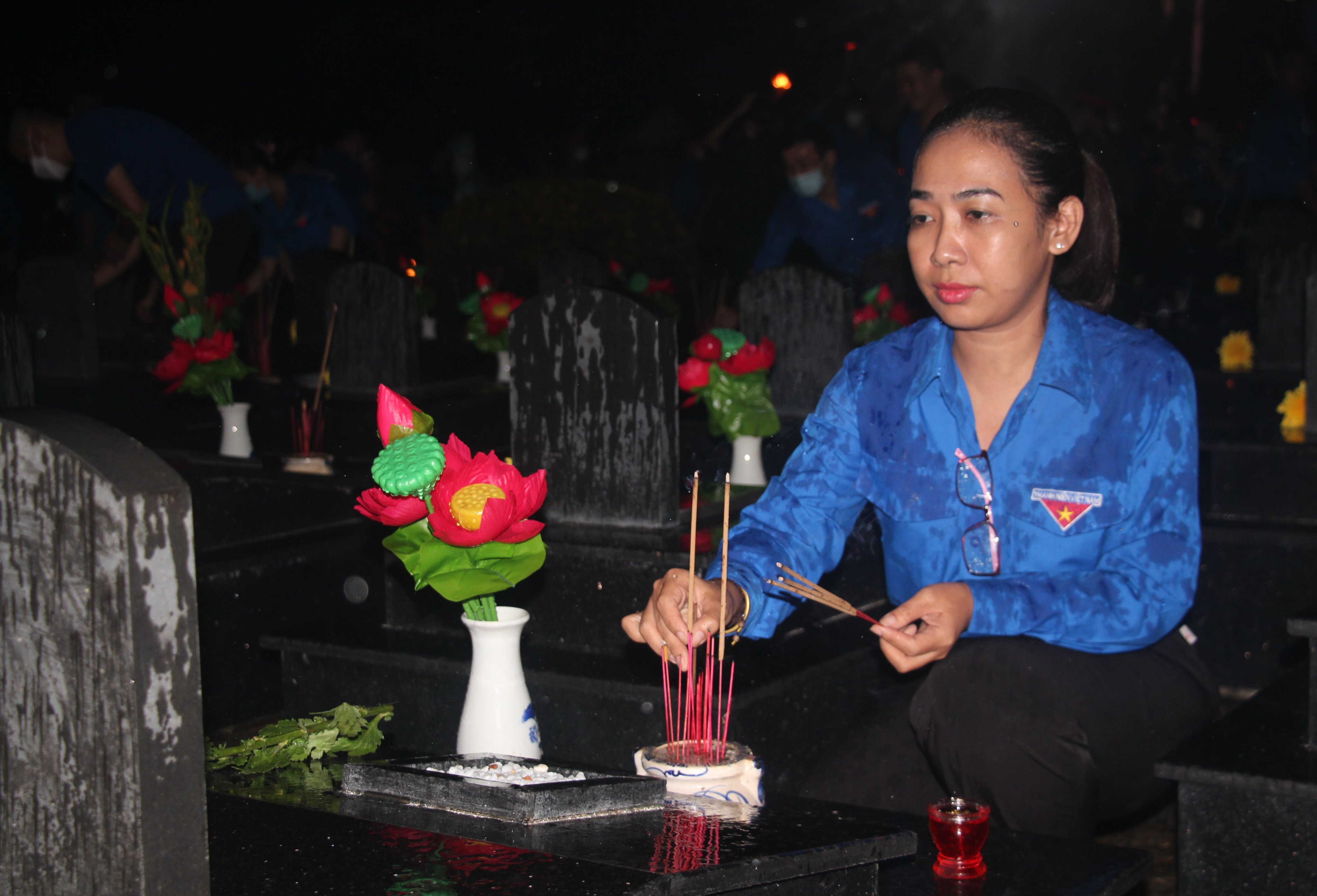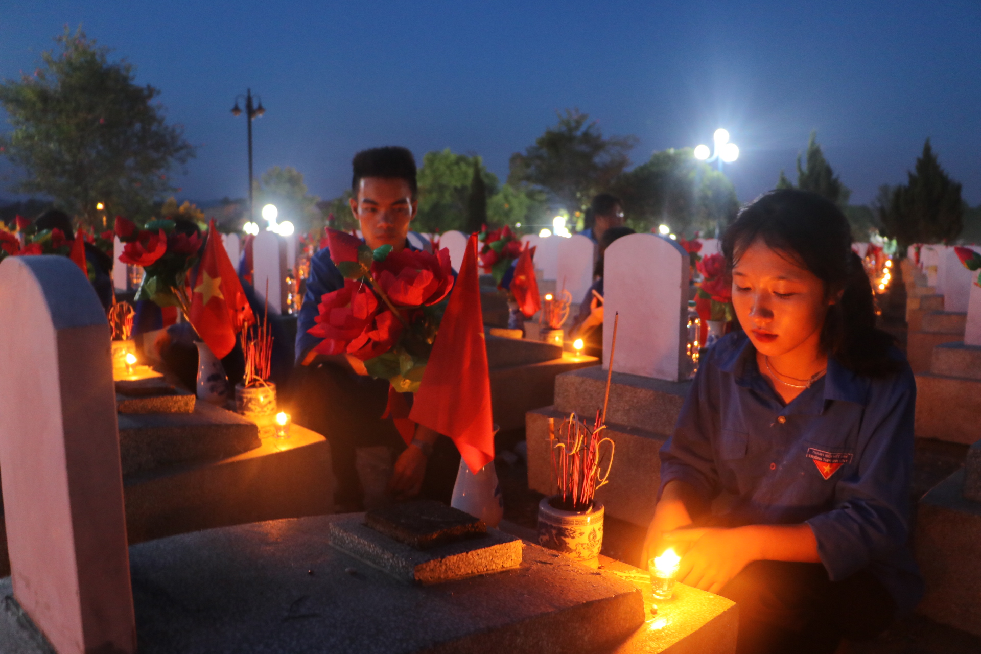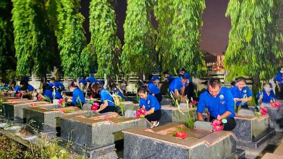 Trong không khí trang nghiêm, đại biểu và đoàn viên thanh niên đã thành kính dâng những ngọn nến hồng, nén hương thơm, những bông hoa tươi thắm tại 2.326 phần mộ liệt sỹ bày tỏ tấm lòng thành kính, khắc ghi công lao, biết ơn với những hy sinh cao đẹp của những người anh hùng đã ngã xuống vì sự nghiệp giải phóng dân tộc và nghĩa vụ quốc tế cao cả.