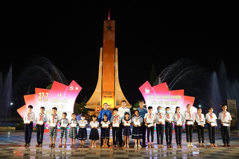 Tại Bình Thuận, tối 26/7, Ban Thường vụ Tỉnh Đoàn phối hợp Sở Lao động – Thương binh và Xã hội tỉnh tổ chức “Lễ Thắp nến tri ân các anh hùng Liệt sỹ” nhân kỷ niệm 75 năm Ngày Thương binh – Liệt sĩ (27/7/1947 – 27/7/2022).