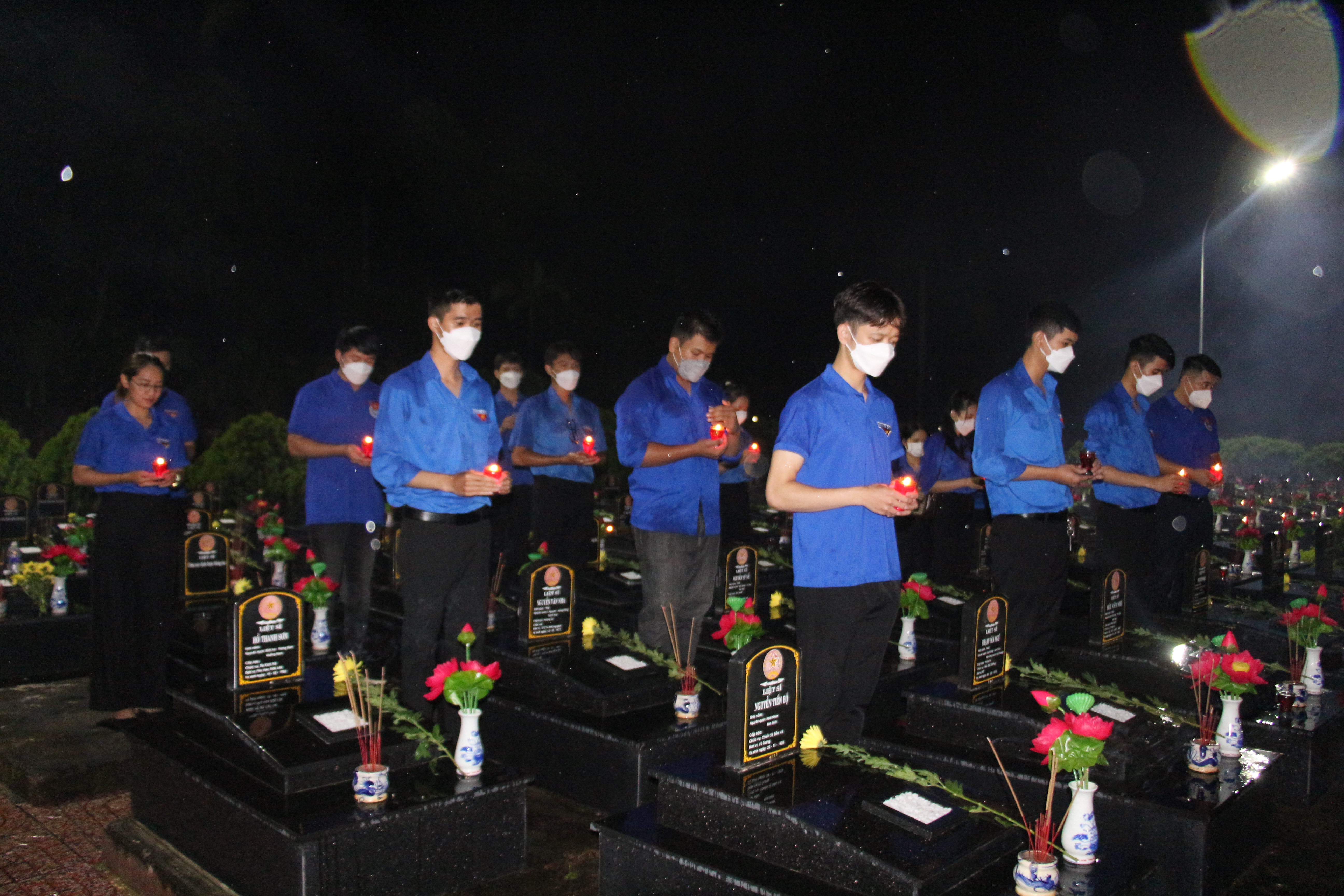 Trong buổi tối ngày hôm nay, tại 130 nghĩa trang liệt sĩ trong tỉnh, tuổi trẻ các cơ sở Đoàn đã đồng loạt dâng hương, thắp nến tri ân, tưởng nhớ biết ơn các anh hùng liệt sĩ. Hàng nghìn ngọn nến của tuổi trẻ toàn tỉnh cùng được thắp lên ấm áp, hàng nghìn lời nguyện cầu, chúc cho linh hồn các anh yên giấc ngủ ngàn thu.