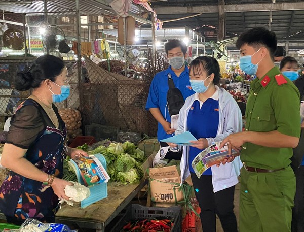 Đoàn viên thanh niên tuyên truyền, vận động người dân cùng tham gia thực hiện chợ văn minh