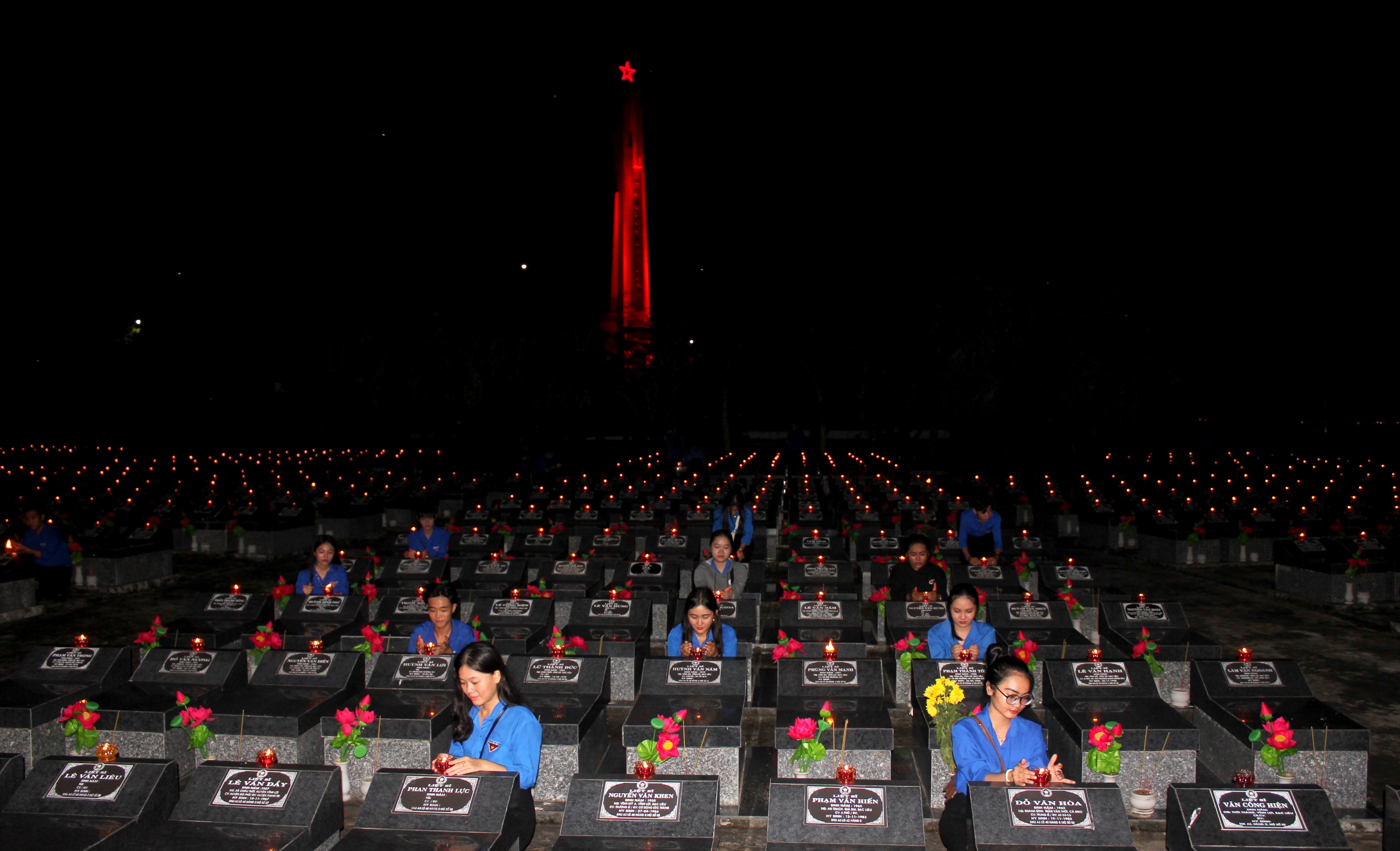 Tại buổi Lễ thắp nến tri ân các anh hùng liệt sĩ, tuổi trẻ tỉnh nhà đã báo công trước anh linh các anh hùng, tỏ lòng thành kính, biết ơn vô hạn đối với các liệt sĩ đã hy sinh cho sự nghiệp đấu tranh giải phóng dân tộc, nguyện tiếp bước các thế hệ cha anh, trung thành với sự nghiệp cách mạng, vượt qua mọi gian lao thử thách, hoàn thành thắng lợi nhiệm vụ xây dựng và bảo vệ Tổ quốc. Tại nơi đây, hàng trăm ngọn nến được thắp lên các lư hương, sáng đỏ thắp ấm thêm linh hồn các anh.