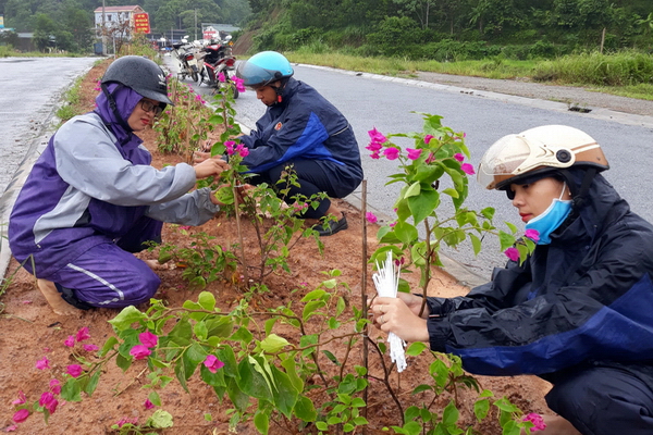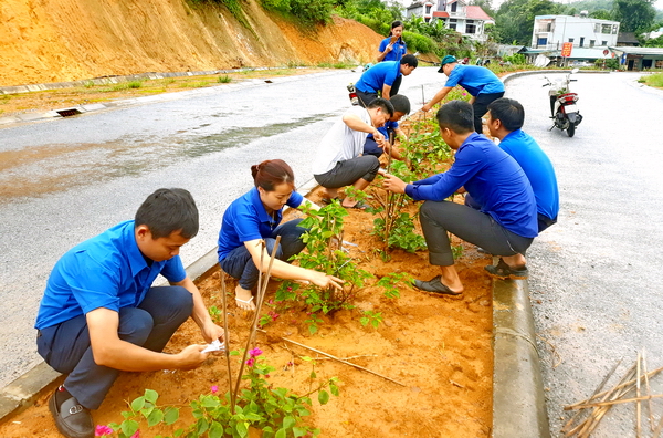 ĐVTN tham gia chăm sóc công trình đường hoa