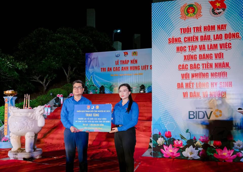 Trong chương trình, Trung ương Đoàn, Tuổi trẻ CAND, tuổi trẻ Tây Ninh và các đơn vị đồng hành: Trung tâm Tình nguyện quốc gia, Ngân hàng BIDV, Ngân hàng TMCP đầu tư phát triển Tp Hồ Chí Minh, Tổng công ty Lương thực miền Nam, Tổng Công ty Mobifone đã trao các phần quà ý nghĩa dành tặng cho các Mẹ Việt Nam anh hùng; gia đình các anh hùng liệt sỹ; cựu thanh niên xung phong; thương bệnh binh; trao các nguồn lực tổ chức các hoạt động an sinh xã hội, chung sức cùng cộng đồng trên địa bàn tỉnh Tây Ninh với tổng giá trị 1,6 tỷ đồng.