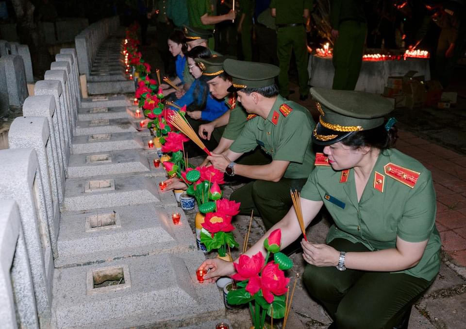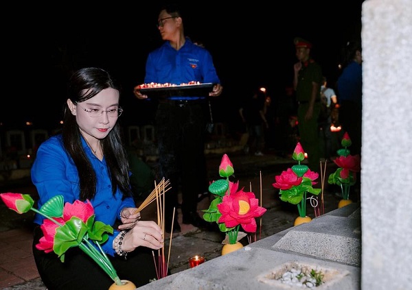 Kết thúc chương trình, tuổi trẻ các lực lượng tham gia hành trình đã thắp nến tri ân, dâng hương ở 14.000 phần mộ các anh hùng, liệt sỹ tại Nghĩa trang Liệt sỹ Đồi 82, huyện Tân Biên, tỉnh Tây Ninh.