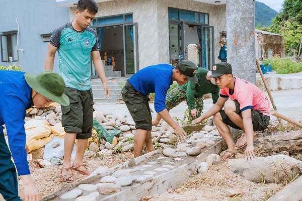 Tuổi trẻ Đà Nẵng hỗ trợ người dân xây dựng và áp đá cuội cổng, tường rào nhà Gươi (huyện Hoà Vang).