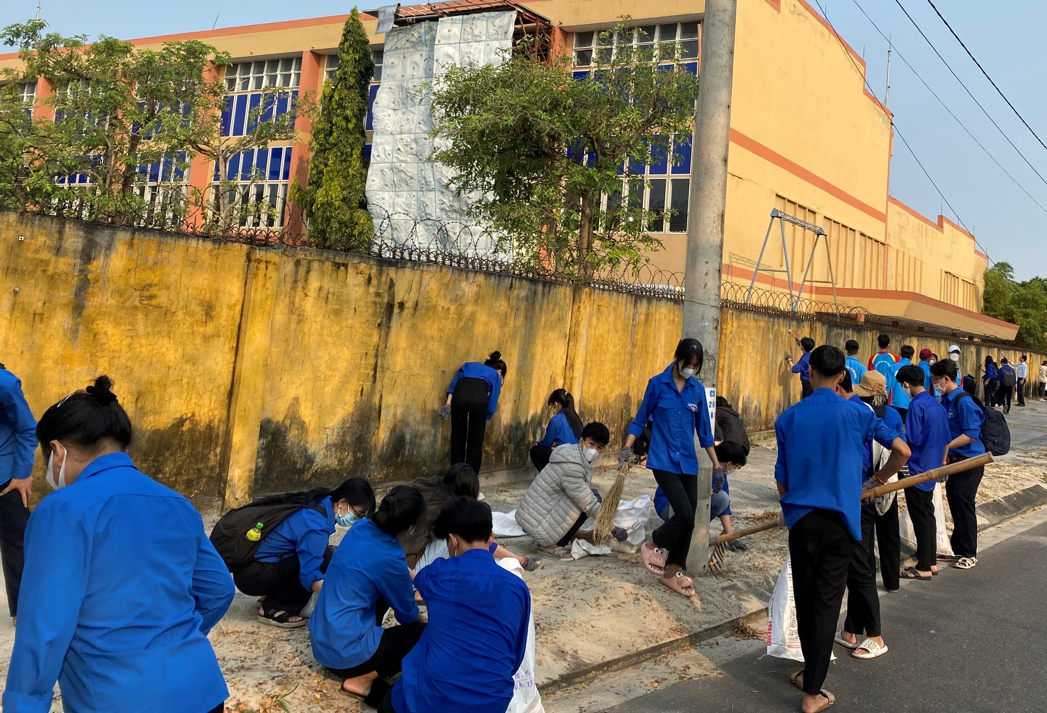 Đoàn viên thanh niên và người dân ra quân dọn vệ sinh