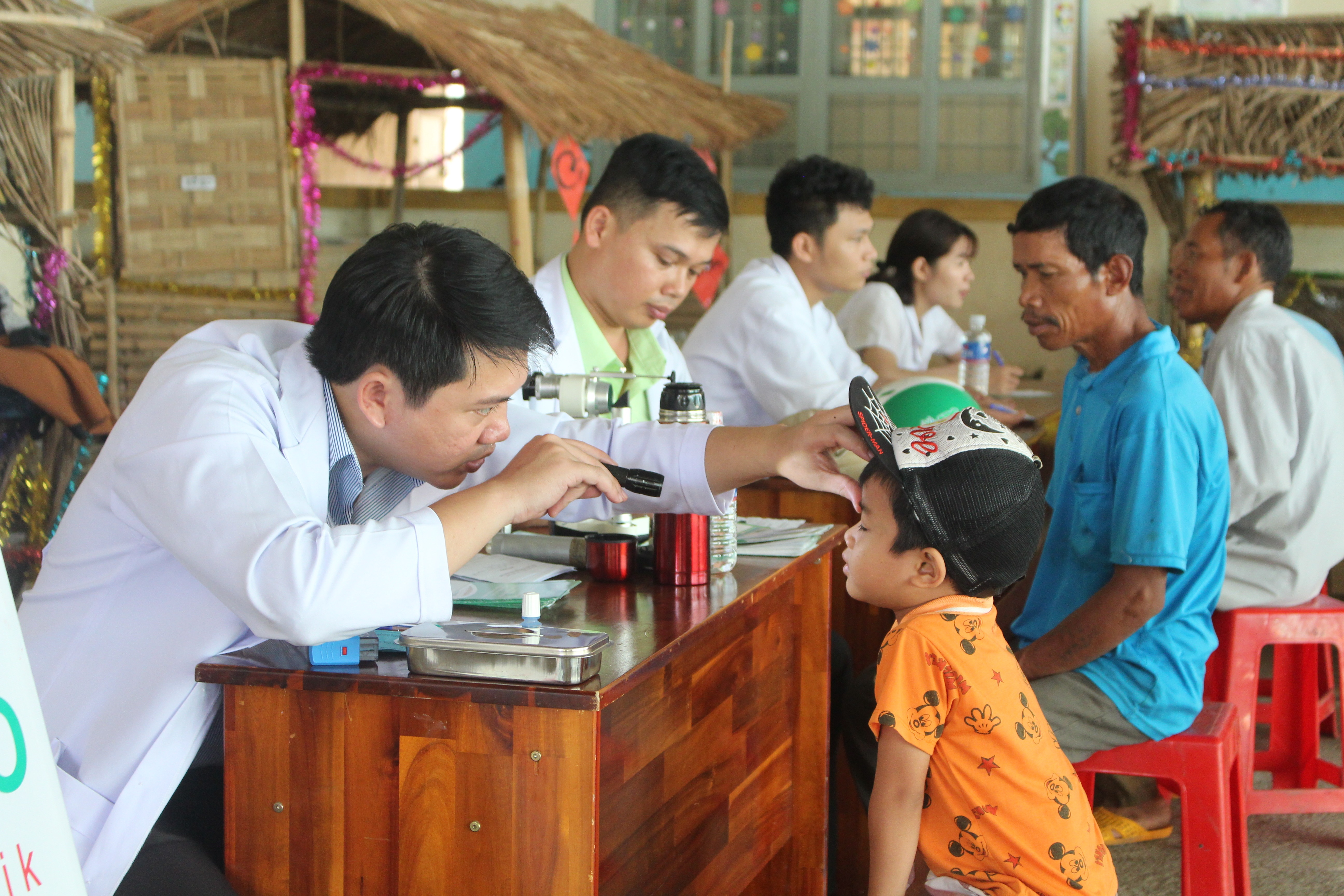Các y, bác sĩ khám mắt miễn phí cho người dân xã Bông Krang