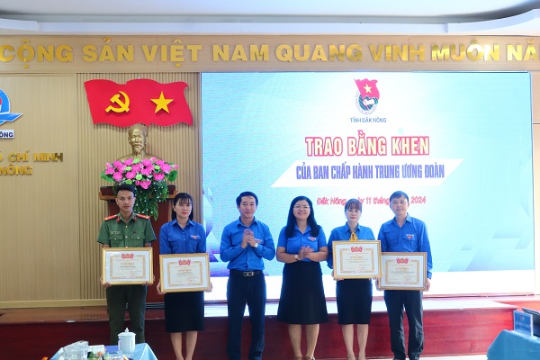 Thừa Ủy quyền của Ban Bí thư Trung ương Đoàn TNCS Hồ Chí Minh tại Hội nghĩ đã trao tặng Bằng khen của Trung ương Đoàn TNCS Hồ Chí Minh cho 04 tập thể và 05 cá nhân có thành tích xuất sắc trong công tác Đoàn và phong trào thanh thiếu nhi năm 3023.