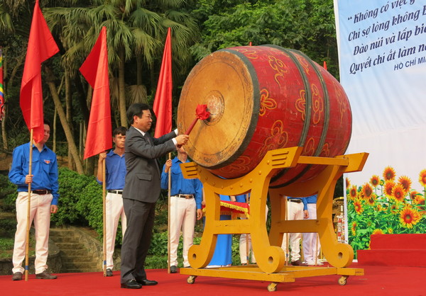 Đồng chí Bùi Văn Quang – Phó Bí thư Thường trực Tỉnh ủy đánh trống phát động Tháng thanh niên 2019