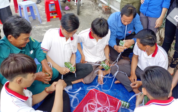 Thanh niên thi gói bánh tét tại Hội trại tòng quân |