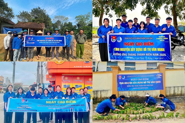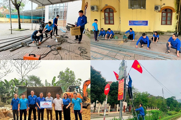 Hưởng ứng ngày cao điểm tình nguyện xây dựng đô thị văn minh trên địa bàn Hương Sơn, Đoàn TT Phố Châu triển khai cắt hàn vật liệu làm đường cờ, trao hỗ trợ kinh phí xóa nhà tạm cho thanh niên khuyết tật; đoàn TT Tây Sơn ra mắt công trình Đường cờ Tổ quốc