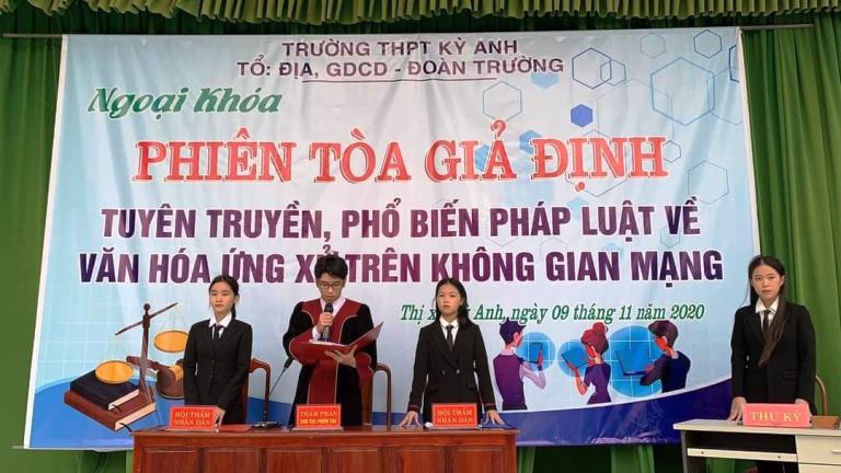 Đoàn trường THPT Kỳ Anh (TX Kỳ Anh) tổ chức phiên tòa giả định tuyên truyền, phổ biến pháp luật về văn hóa ứng xử trên không gian mạng.