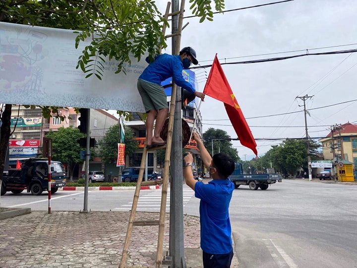 Tại Thị xã Hồng Lĩnh, các cơ sở Đoàn tổ chức dọn vệ sinh môi trường tại các tuyến đường, treo giá cờ, pano, ápphic; trồng mới, chăm sóc đường các tuyến đường hoa thanh niên...