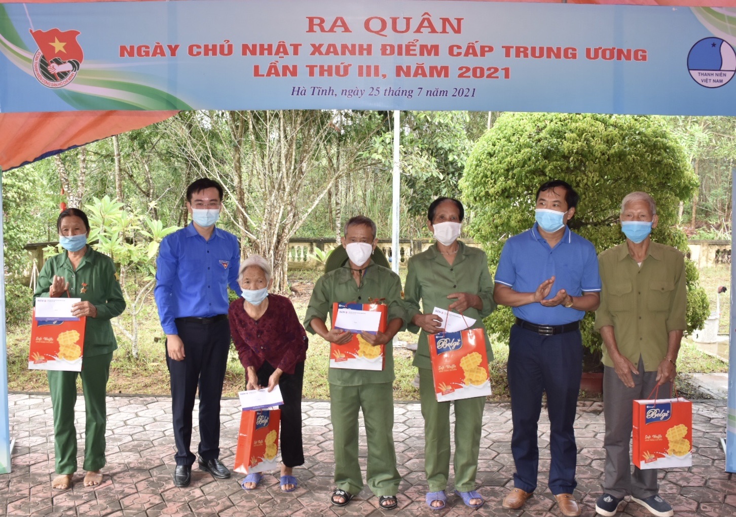 Dịp này, BTV Tỉnh đoàn Hà Tĩnh trao tặng quà cho bà Lê Thị Bảy - em gái và bà Nguyễn Thị Em - em dâu AHLS Lý Tự Trọng.