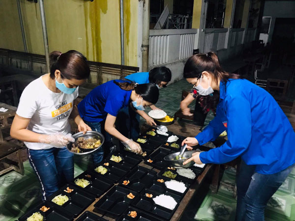 ĐVTN nấu cơm hỗ trợ các lực lượng trực chốt