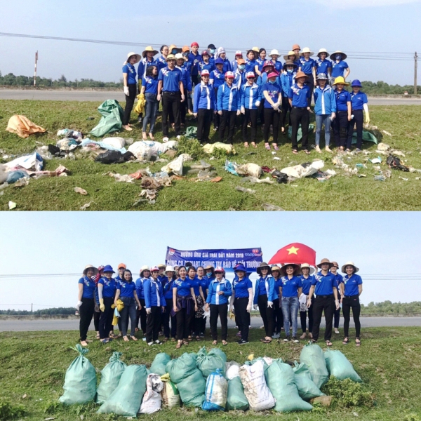 Trong tháng Thanh niên năm 2019, toàn tỉnh đã tổ chức nhiều đợt ra quân thu hút gần 50.000 lượt ĐVTN tình nguyện vệ sinh môi trường, thu gom, xử lý hơn 300 tấn rác thải trên đường làng ngõ xóm, bãi biển, khu dân cư...; lắp đặt 350 thùng rác, hố rác tập trung, xóa bỏ nhiều điểm đen tập kết rác thải tại các địa phương.