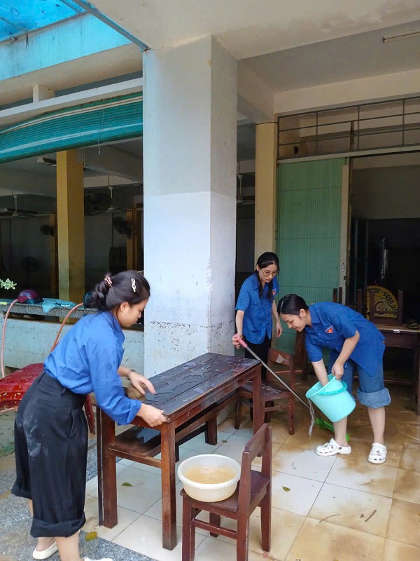 Đồng thời, chỉ đạo BTV Đoàn các cấp có kế hoạch cụ thể hỗ trợ các gia đình bị thiệt hại, giúp các em học sinh đến trường học đảm bảo an toàn, khơi thông dòng chảy, vệ sinh môi trường.