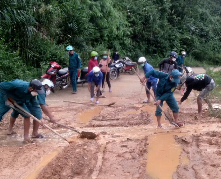 Thanh niên huyện Khánh Sơn hỗ trợ khắc phục sự cố sạt lở tại các tuyến đường liên xã, liên thôn