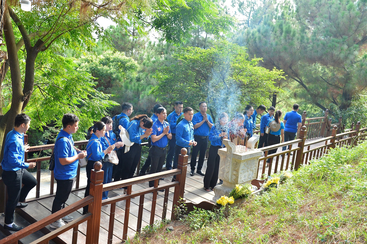 Đồng chí Bùi Hoàng Tùng, Uỷ viên Ban Thường vụ Trung ương Đoàn, Bí thư Đoàn Khối các cơ quan Trung ương dâng hương 10 nữ anh hùng tại Ngã ba Đồng Lộc, tỉnh Hà Tĩnh