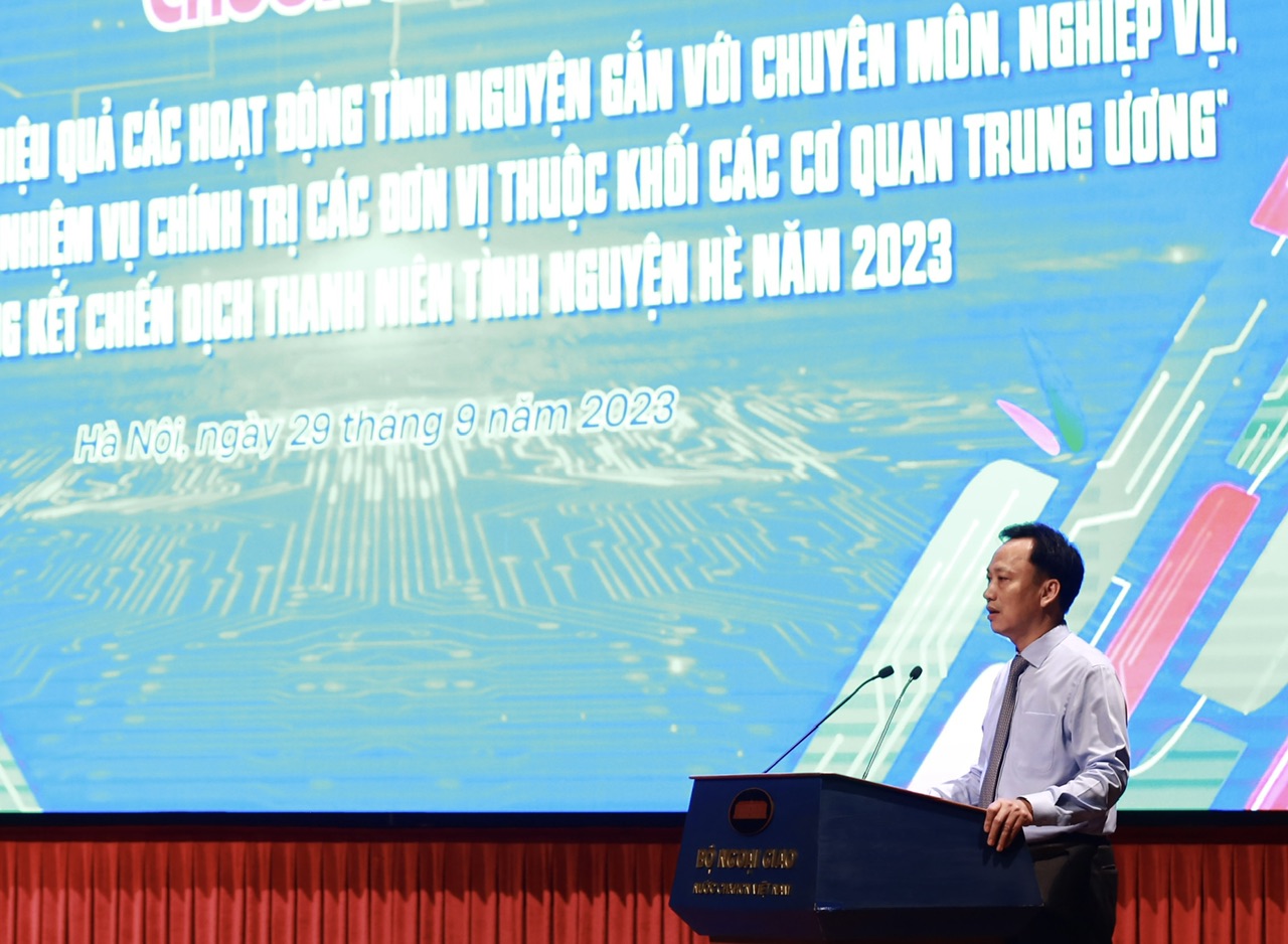 Phát biểu tại chương trình, đồng chí Lại Xuân Lâm ghi nhận các ý kiến tham luận, đề xuất tại tọa đàm; những kết quả tích cực mà tuổi trẻ Đoàn Khối đạt được trong Chiến dịch Thanh niên tình nguyện Hè năm 2023.