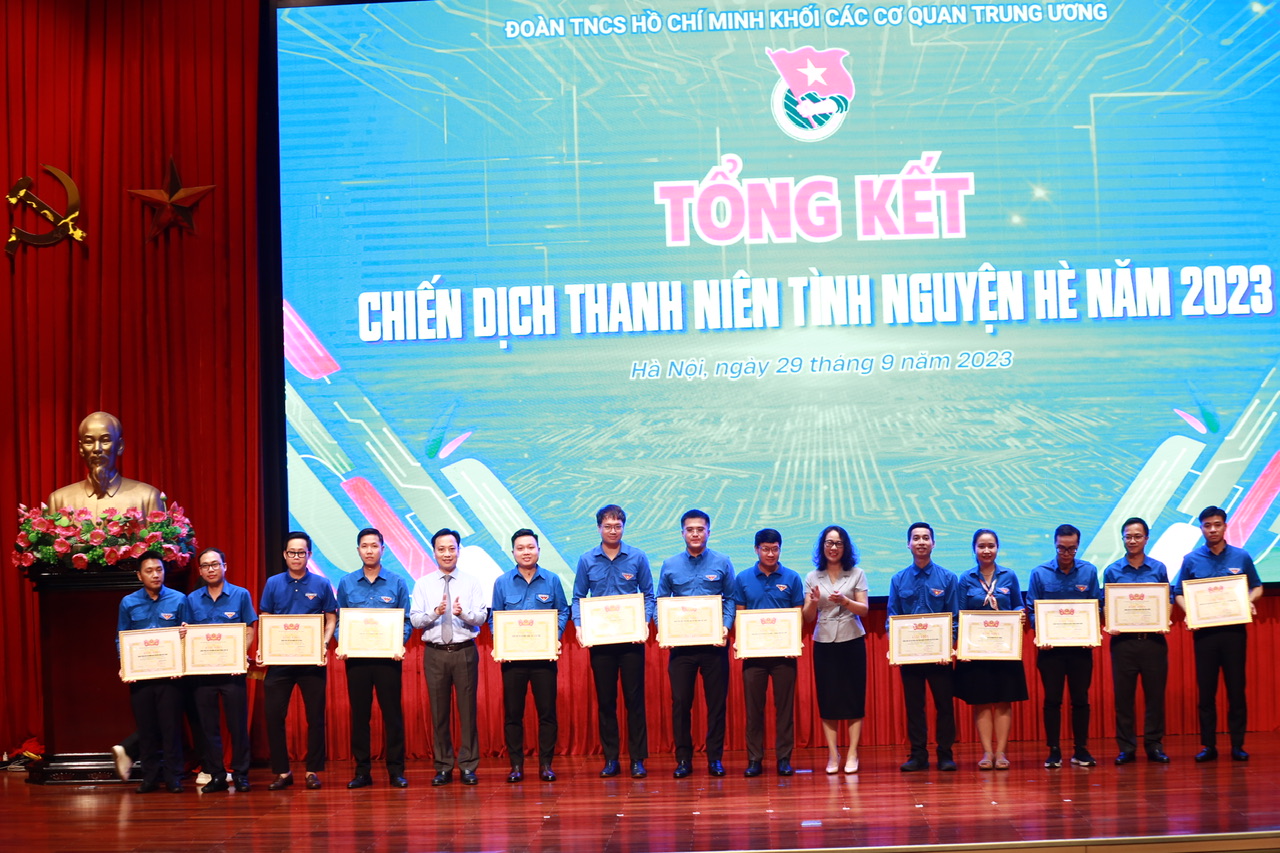 Dịp này, Đoàn Khối đã trao tặng bằng khen cho 32 tập thể có thành tích tiêu biểu trong Chiến dịch; Tỉnh Đoàn các tỉnh: Cao Bằng, Tuyên Quang, Hà Nam, Hà Tĩnh trao tặng bằng khen cho 7 tập thể đơn vị và 3 Cụm hoạt động của Đoàn Khối vì “Đã có thành tích xuất sắc trong triển khai Chiến dịch Thanh niên tình nguyện hè 2023” tại địa bàn các tỉnh.