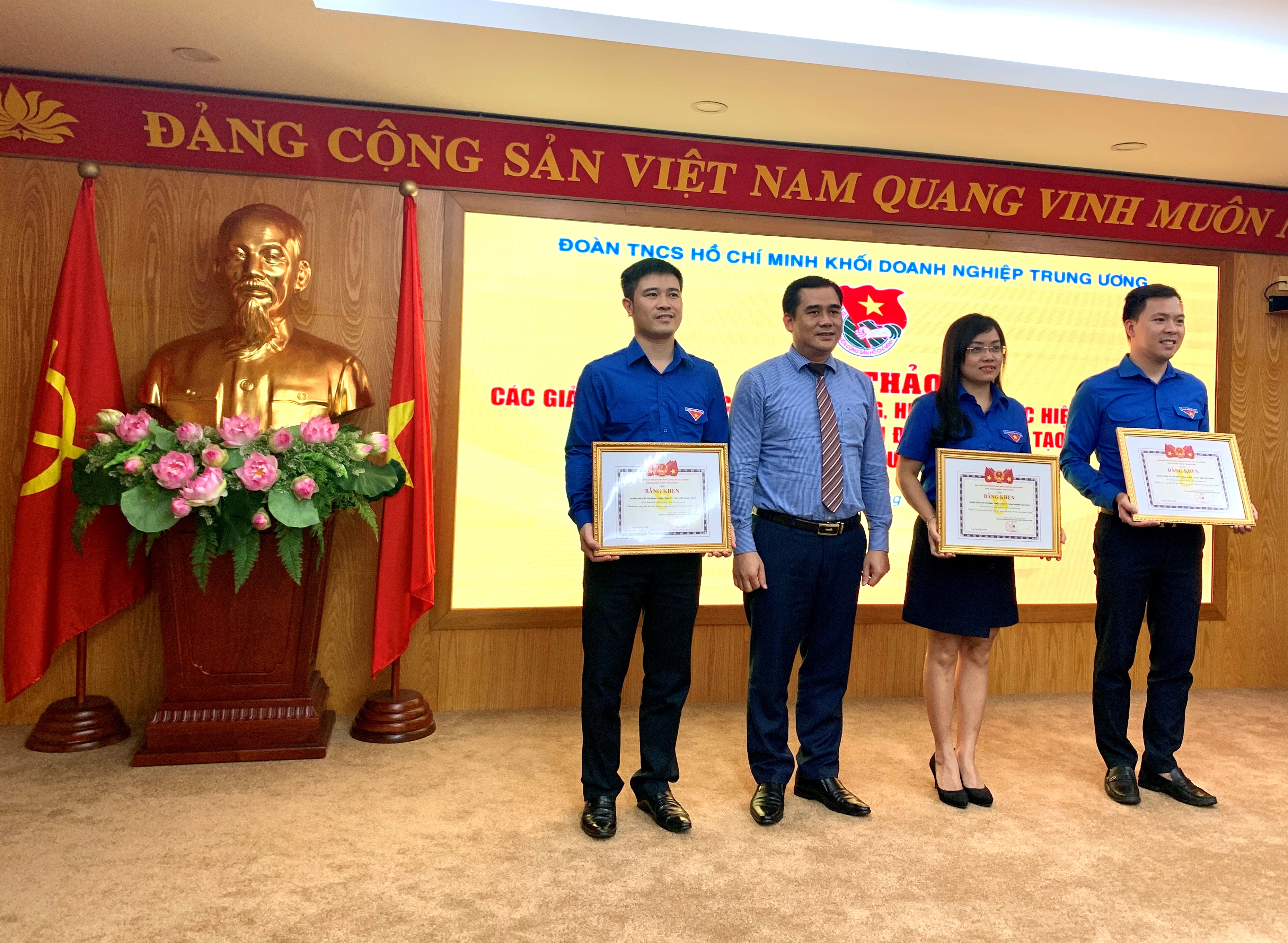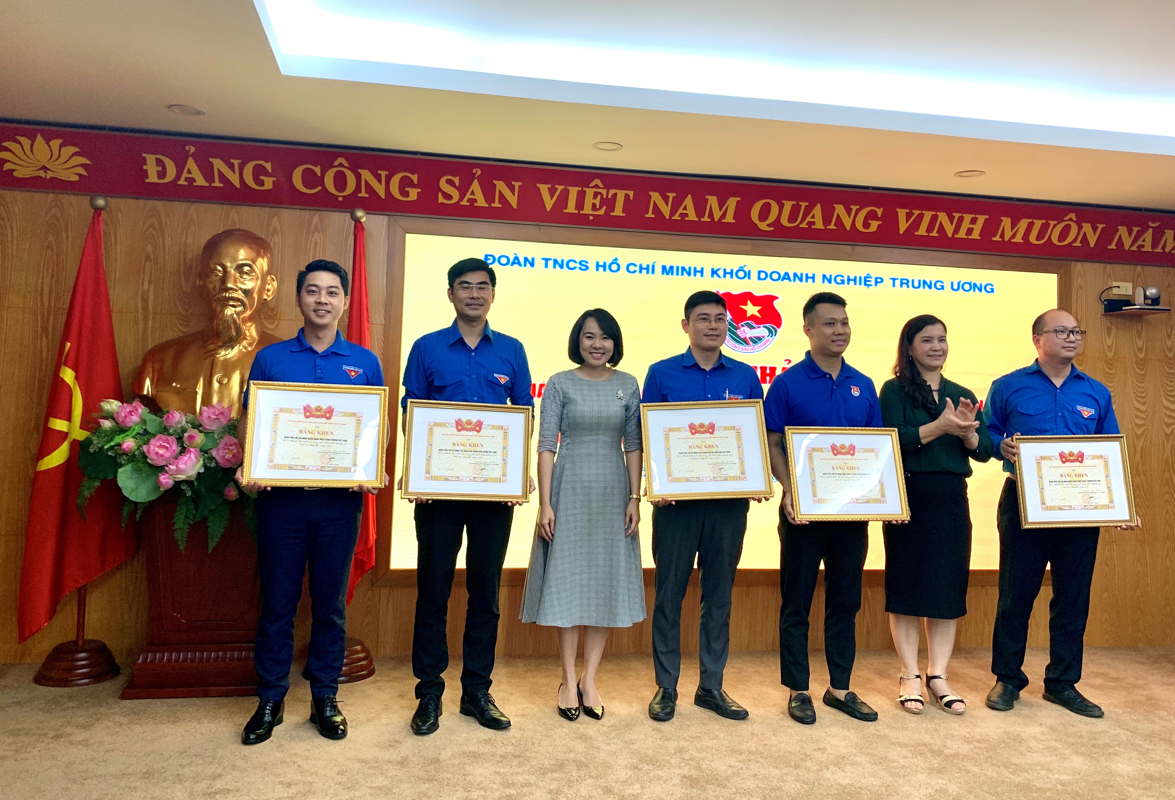 Bí thư Đoàn Khối Doanh nghiệp Trung ương Vũ Đức Tú tặng Bằng khen của Khối cho 05 tập thể có thành tích xuất sắc trong phong trào “Thanh niên xung kích đổi mới sáng tạo, nâng cao năng suất hiệu quả doanh nghiệp”.