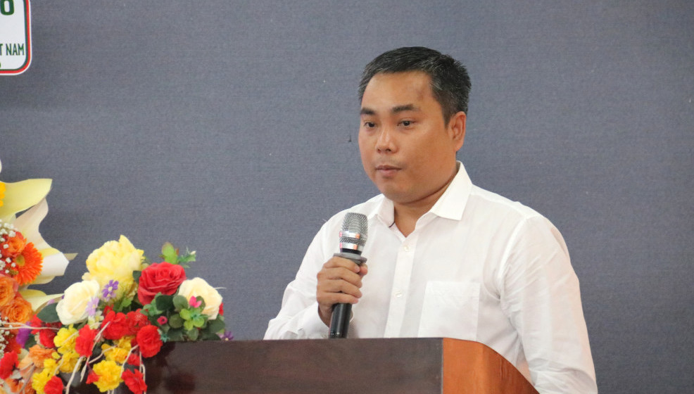 Đồng chí Phạm Văn Hậu, Phó Bí thư Tỉnh đoàn, Chủ tịch Hội đồng Đội tỉnh, Chủ tịch Hội Sinh viên Việt Nam tỉnh phát biểu tại ngày hội