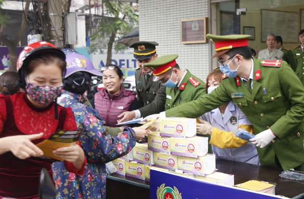 ĐVTN công an tỉnh tham gia phát khẩu trang cho người dân
