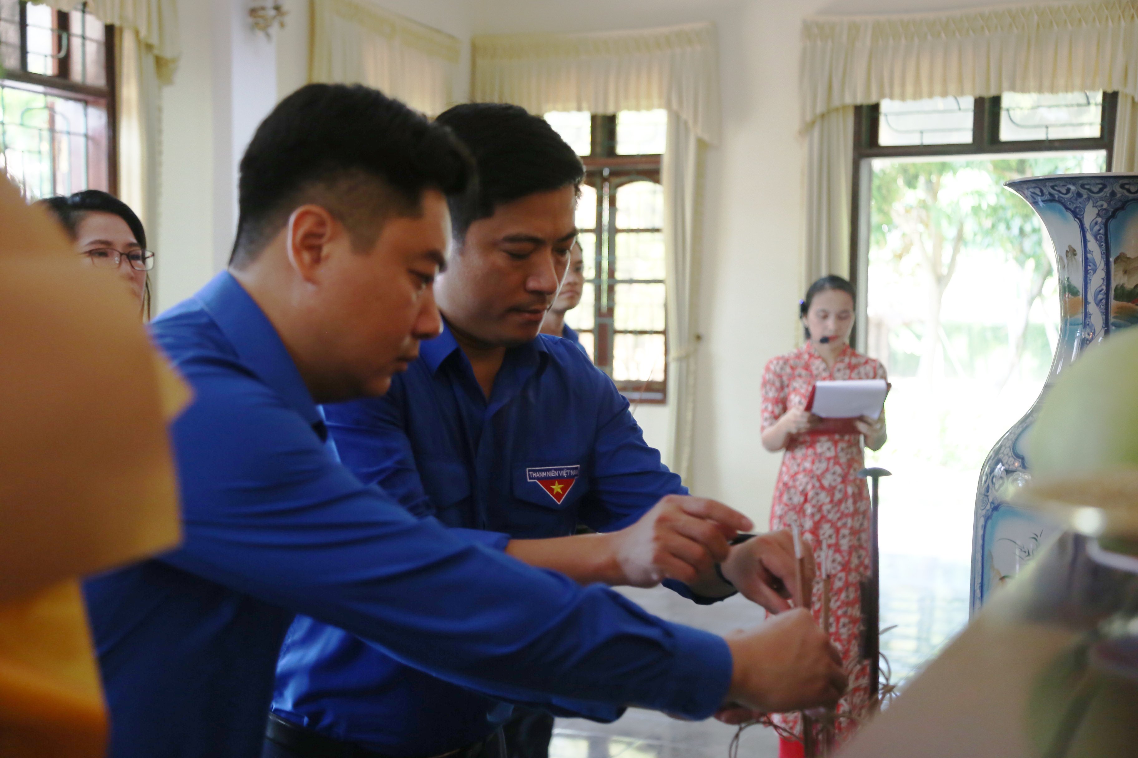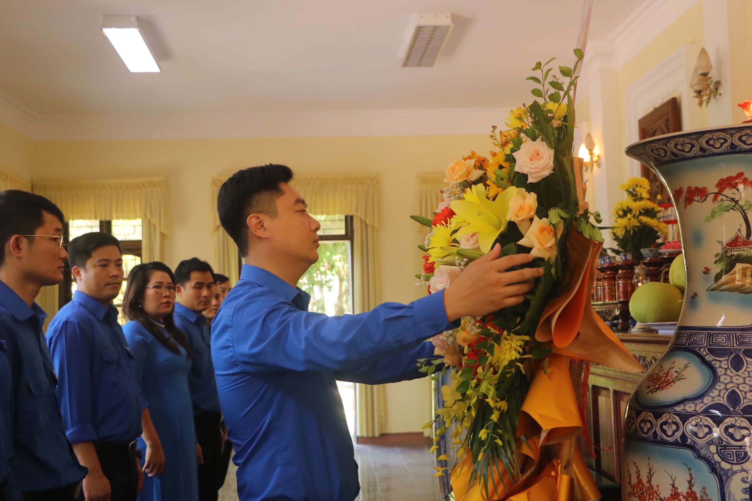 Dâng hương, dâng lễ tưởng niệm cố Tổng Bí thư Lê Hồng Phong có đồng chí Trần Văn Đông - Ủy viên Ban Thường vụ, Phó Chánh Văn phòng Trung ương Đoàn; đồng chí Lê Văn Lương - Ủy viên Ban Chấp hành Trung ương Đoàn, Bí thư Tỉnh Đoàn Nghệ An và đại diện các ban, phòng liên quan.