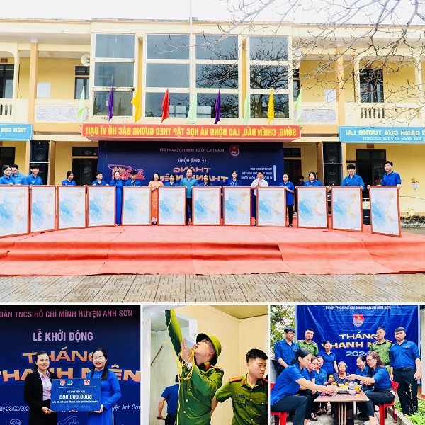 Tại huyện miền núi Anh Sơn và Con Cuông, các đơn vị đã trao tặng hơn 100 bản đồ Tổ quốc Việt Nam, gần 1 tỷ đồng vốn hỗ trợ thanh niên phát triển kinh tế, trao tặng hàng trăm suất quà, tổ chức Bữa cơm yêu thương; hưởng ứng Chương trình “Những bước chân vì cộng đồng”, ủng hộ gây quỹ xây nhà văn hóa cộng đồng cho dân tộc Đan Lai (bản Bu, xã Châu Khê) do Trung ương Đoàn TNCS Hồ Chí Minh phát động.
