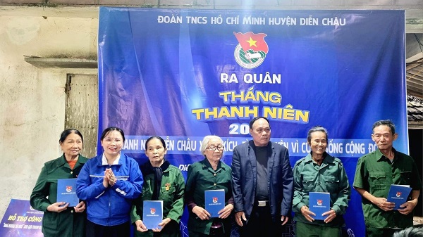 Tại huyện Diễn Châu, tuổi trẻ chú trọng các hoạt động chăm lo cho các cựu TNXP có hoàn cảnh khó khăn, trao 10 suất quà trị giá 3 triệu đồng cho 10 bác cựu TNXP; hỗ trợ 01 công trình "Nhà khoác áo mới" cho bà Hoàng Thị Lâm, cựu thanh niên xung phong xóm Vạn Nam, Diễn Vạn.