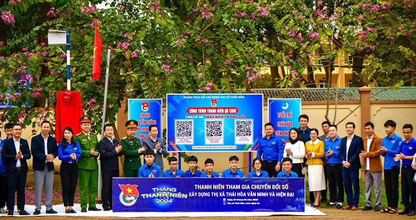 Phát huy vai trò của tuổi trẻ trong chuyển đổi số, Thị đoàn Thái Hòa đã ra mắt và trao tặng: 02 hệ thống loa phát thanh tự động; 01 công trình, 08 mô hình QRCODE Check in "Thái Hoà trong tôi" cho trường THPT Đông Hiếu, các xóm trên địa bàn xã Đông Hiếu, thị xã Thái Hoà.