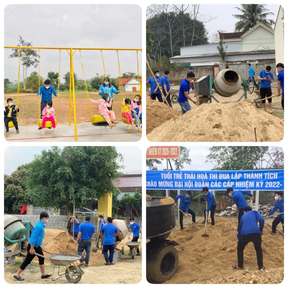 Khởi công xây dựng và bàn giao công trình sân chơi cho thiếu nhi. Ảnh: Thị đoàn Thái Hòa, huyện đoàn Tân Kỳ
