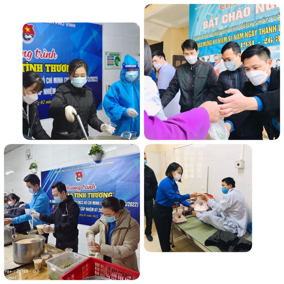 Tặng những suất cháo miễn phí cho bệnh nhân nghèo tại các bệnh viện địa phương. Ảnh: Huyện đoàn Tân Kỳ, Quỳ Châu